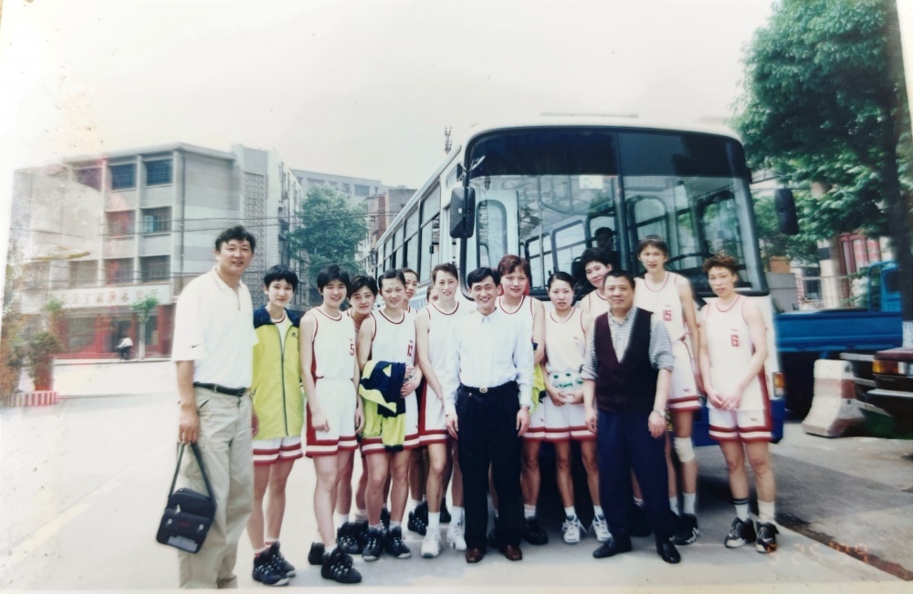 ▲1999年5月25日,沈陽(yáng)電梯隊(duì)在公交車(chē)旁合影留戀。從“中國(guó)籃球大事記”查閱到,1999年全國(guó)女子籃球甲級(jí)聯(lián)賽,沈陽(yáng)電梯隊(duì)奪得了當(dāng)年聯(lián)賽冠軍。