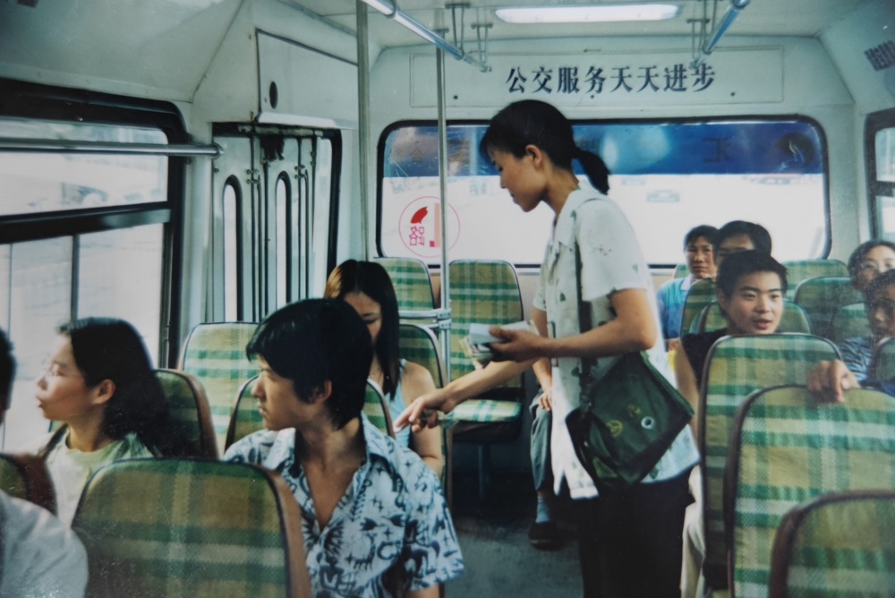 ▲90年代,公交售票員工作模樣??嬷卑?,手中拿著零錢和車票,收錢、找錢、給票、查票行云流水。高峰期數(shù)十人上下車,想要收好票款,無疑是一種考驗,而她們久經(jīng)考驗。