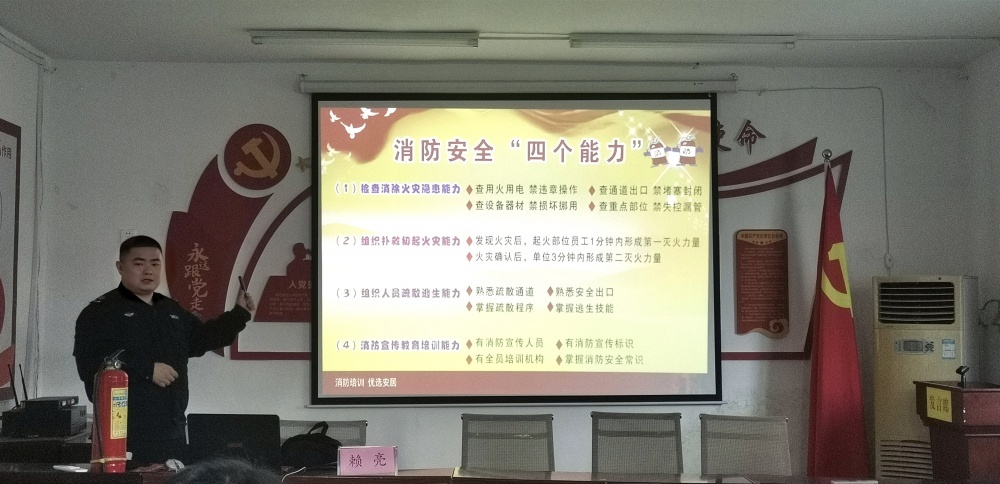 培訓中,賴亮教官首先通過播放火災警示視頻,讓干部職工直觀地認識火災危害,喚起大家對消防安全的高度重視。隨后賴亮教官結(jié)合多起典型事故案例進行消防安全知識授課,重點講解了火災的特性與預防、消防安全四個能力建設、火災應急處置等方面內(nèi)容,同時現(xiàn)場對各類消防器材的使用方法及動作要領(lǐng)進行實操演示。