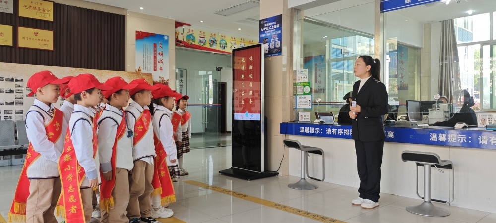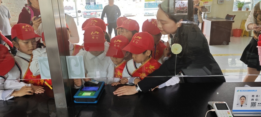 圖/在公交營(yíng)業(yè)廳,工作人員為同學(xué)們介紹了公交IC卡種類以及“學(xué)生卡”辦理流程,通過實(shí)物演示的方式與同學(xué)們互動(dòng)問答。