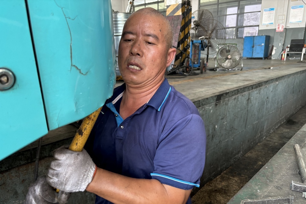 風(fēng)扇吹不散車間悶熱,他全神貫注,手中工具穩(wěn)穩(wěn)擰動,只為公交車能盡快修復(fù)。