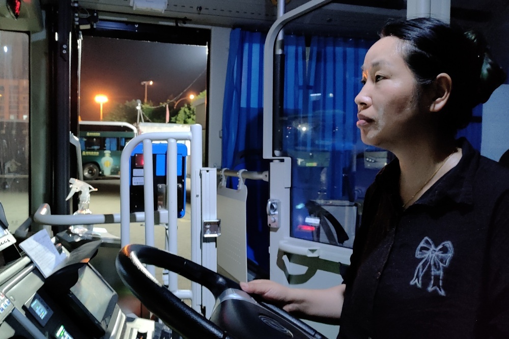 夏夜的停車場很是悶熱,她穿梭于公交車之間熟練地挪動車輛,確保每輛車都能在充電低峰時(shí)段把電充滿。