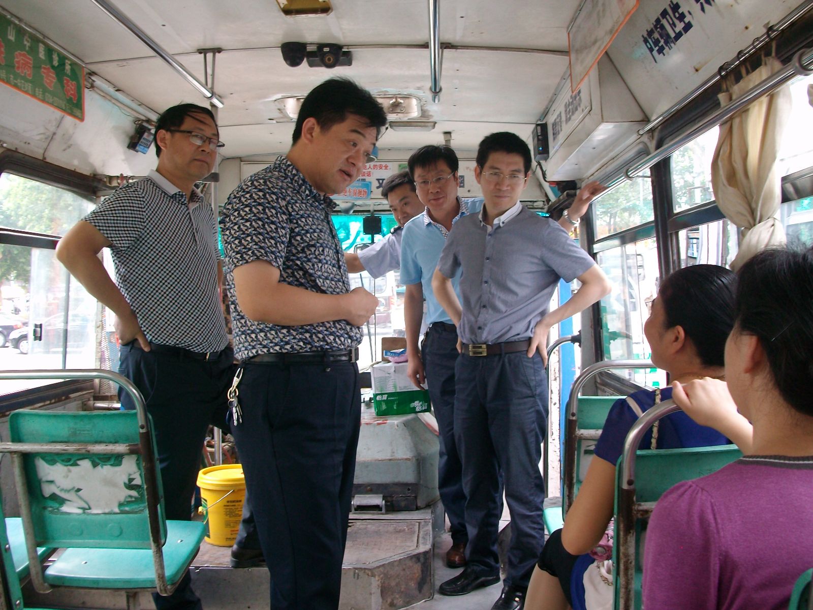 當日中午12時,正值高溫時刻,伍應(yīng)彪等領(lǐng)導(dǎo)冒著炎炎夏日來到?;圮囌?,看望慰問高溫下堅守工作崗位的公交職工。在16路、21路、22路線正待發(fā)班的公交車前,伍應(yīng)彪上車與一線駕駛員親切握手,詢問了解駕駛員們的身體和工作情況,并聽取了一公司負責人對改善職工們的工作和休息環(huán)境等工作匯報。在與駕駛員們親切交談中,伍應(yīng)彪親自為駕駛員們送上了礦泉水、毛巾、人丹、清涼油等防暑降溫用品。同時,他還向部分乘客征求了改善乘車環(huán)境的意見和建議。