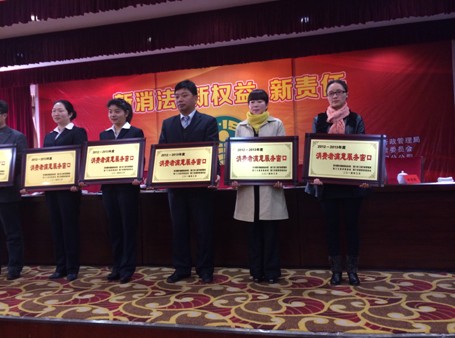 3月14日,荊門市消費者權(quán)益保護工作會議在荊門賓館四樓會議室召開,會議表彰了獲得荊門市2012-013年度"十佳消費者滿意服務(wù)窗口"以及荊門市2012-2013年度"消費者滿意服務(wù)窗口"稱號的30家單位,集團公司IC卡發(fā)行管理中心在這次評選中獲"消費者滿意服務(wù)窗口"稱號。